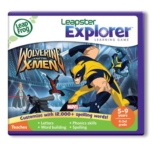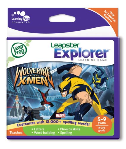 -. Binding : Toy -. Brand : LeapFrog Enterprises -. EAN : 0708431390492 -. Feature : Create your own spelling list with the words you need for school / As you play, earn tokens to download new gear for Wolverine / Use letter skills and vowel know-how to battle your way through eight action-packed levels that take you to four locations / Teaches letters, word building, phonics skills and spelling; Appropriate for children ages 5 to 9 years (grades K to 3) / Works with all LeapPad learning tablets, LeapsterGS and Leapster Explorer (sold separately); Internet connection may be required for cartridge -. IsAdultProduct : 0 -. IsAutographed : 0 -. IsMemorabilia : 0 -. Label : LeapFrog -. Manufacturer : LeapFrog -. Model : 39049 -. MPN : 80-39049E -. PackageQuantity : 1 -. PartNumber : 80-39049E -. ProductGroup : Toy -. ProductTypeName : TOYS_AND_GAMES -. Publisher : LeapFrog -. ReleaseDate : 2010-06-01 -. Studio : LeapFrog -. Title : LeapFrog Explorer Learning Game: Wolverine and the X-Men (works with LeapPad & Leapster Explorer) -. UPC : 708431390492