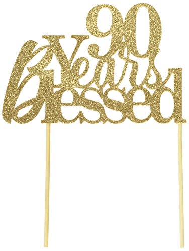 All About Details Gold 90-Years-Blessed Cake Topper