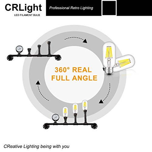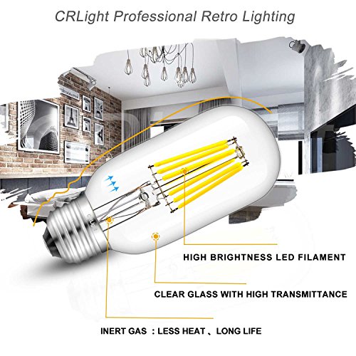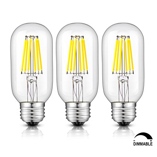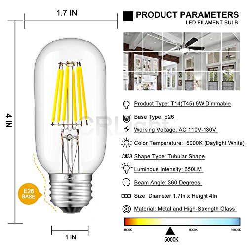 CRLight 6W Dimmable Edison Style Antique LED Filament Tubular Light Bulb, 5000K Daylight White 650LM, E26 Medium Base Lamp, T14(T45) Tubular Shape, 65W Incandescent Equivalent, Pack of 3