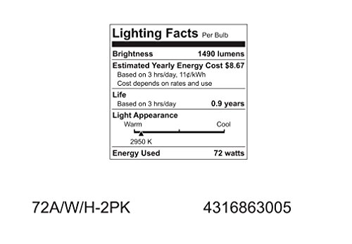 GE Lighting 63005 Soft White 72-Watt (100-Watt Replacement) 1490-Lumen A19 Light Bulb with Medium Base, 6-Pack