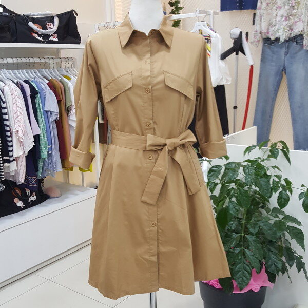 셔츠형 벨트원피스입니다.오픈하실경우 초가을 트렌치코트로 활용도가능한 스타일입니다~(총장은88cm입니다)