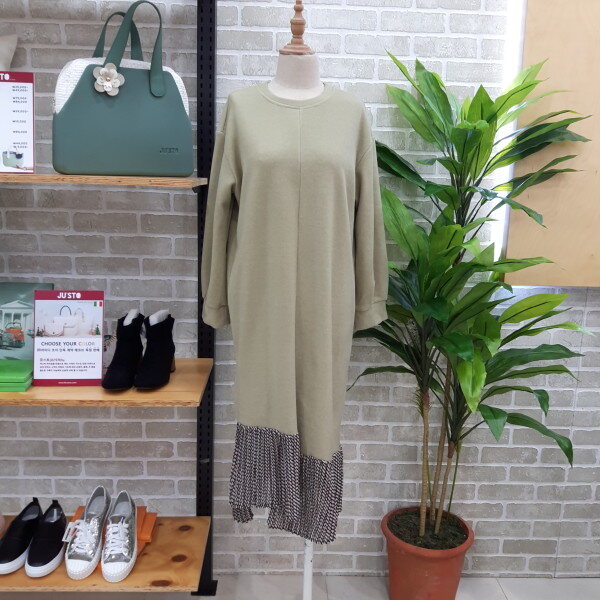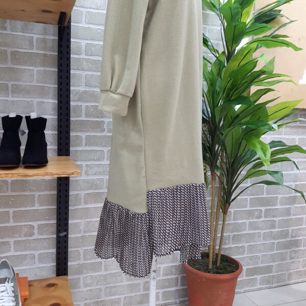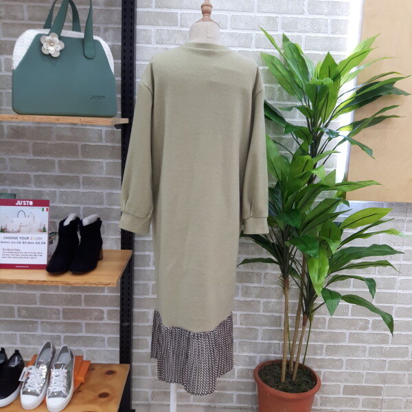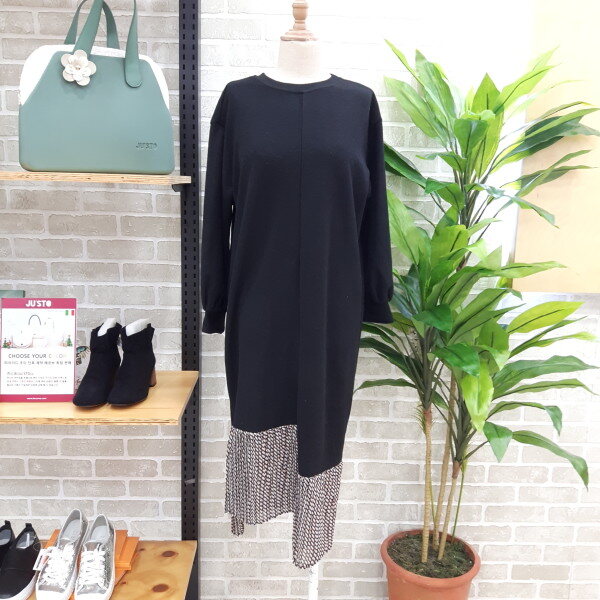 원피스 밑단이 언발런스한 배새롱 원피스입니다다뜻한 소재로 단독착용이 가능하고 점퍼나 코트를 같이 코디하셔도 좋은 배색 롱원피스입니다