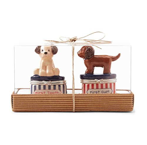 ReleaseDate : 2016-06-20 Studio : Mud Pie Publisher : Mud Pie Binding : Baby Product Product Description Commemorate your little one's first milestones in our 2-piece set including hinged "First Tooth" and "First Curl" keepsake boxes with hand-painted ceramic puppies on top 0