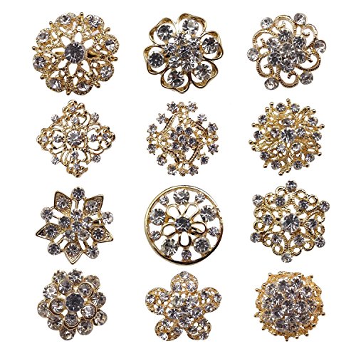 -. Feature : 色:ゴールド / 主な素材 :合金、ラインストーン / サイズ 直径:約2.2CM~3CM / 数量:12個の組み合わせ / 使い場所:結婚式、パーティー 宴会 誕生日 プレゼントなど