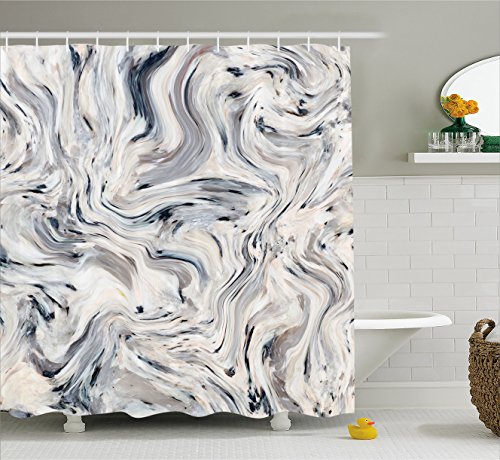 Apartment Decor Shower Curtain by Ambesonne, Japanese Marble Motif with Artisan Pigment Effects Interior Stucco Design, Fabric Bathroom Decor Set with Hooks, 70 Inches, Beige Grey