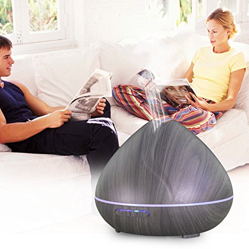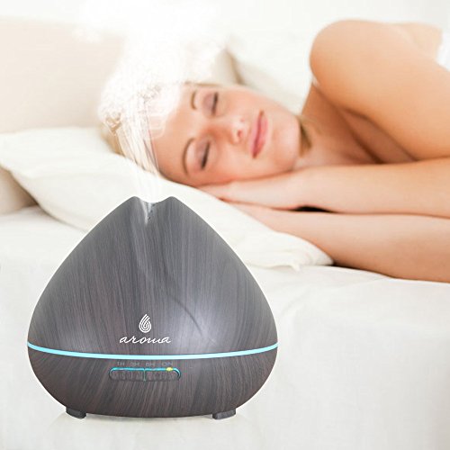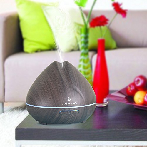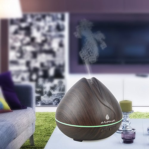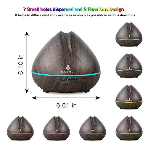 6 Aroma 400ml Aromatherapy Essential Oil Diffuser, Wood Grain Ultrasonic Aroma Cool Mist Humidifier Aroma Diffuser. 7-colors to choose or let it automatically changing colors.