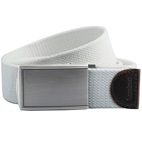 Men fashion belt, ratchet metal buckle, solid color canvas web strap, fully adjustable, fit waist size below 38 inches.If it is too long for you,you could cut shorter,this is the instruction: