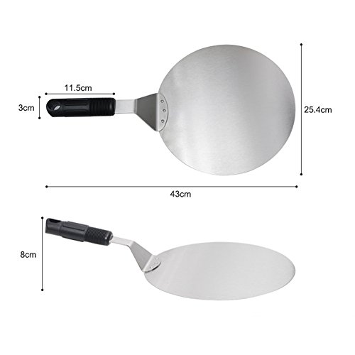 Shovel size: Diameter 25.4cm Overall size: 25.4 x 43 x 8cm Handle length: 11.5cm Material: 430 Stainless steel PP TPR 1 X Pizza Peel