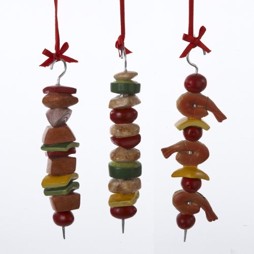 Kurt Adler Set of 3 Vegetable, Meat And Shrimp Kabobs Ornaments
