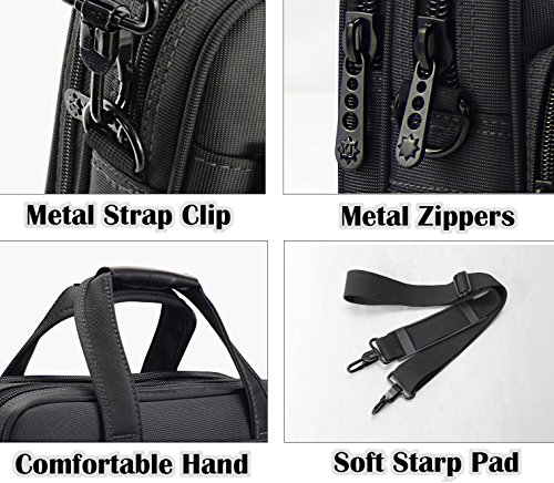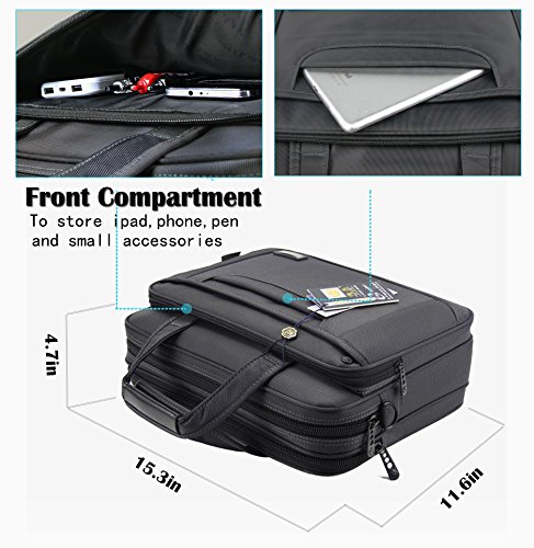 -. Feature : MULTIFUNCTIONAL COMPARTMENT: Organizer briefcase dimensions fixs up to 15.6 inch laptop. Huge-roomy and 6 compartments can provide a separated space for your laptop, tablet, iPad, macbook Pro, power bank, books, A4 files, wallet, pens, keys and more. / MATERIAL:Made from durable Eco-Friendly Nylon Fabric provides waterproof and scratch function. / PADDED LAPTOP COMPARTMENT:Made from a thick foam pad protecting your laptop from accidental bump, shock, scratch. / COMFORTABLE:Removeable and adjustable PU padding shoulder strap, and dual sturdy handles for long time comfortably carrying. / CONVENIENCE: A wide Lage belt securely attaches briefcase to most rolling lage. It is really convenient for your happy journey to any where.
