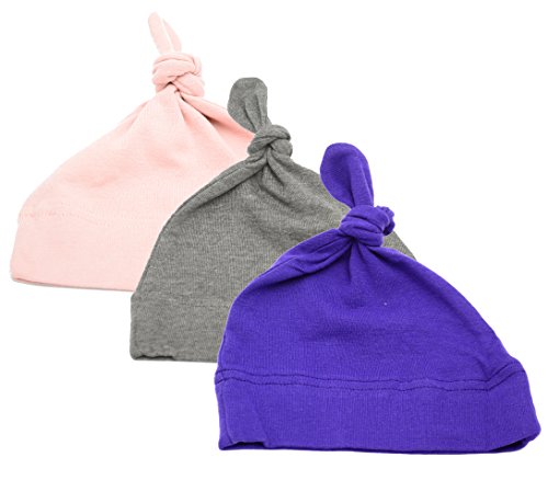 Mato & Hash Unisex Baby 100% Cotton Adjustable Knot Hat 3PK Pink/Purple/H.Grey