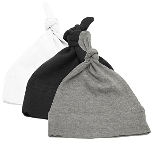 Mato & Hash Unisex Baby 100% Cotton Adjustable Knot Hat 3PK Black/White/HthrGrey