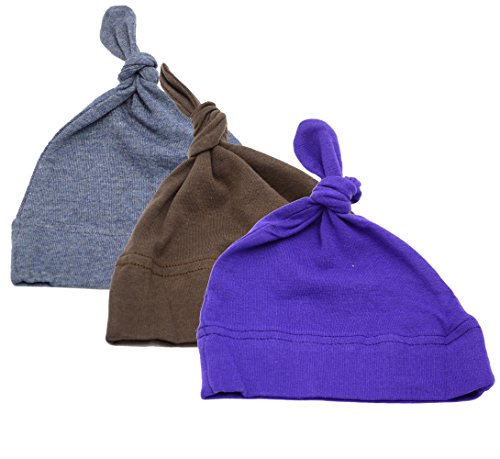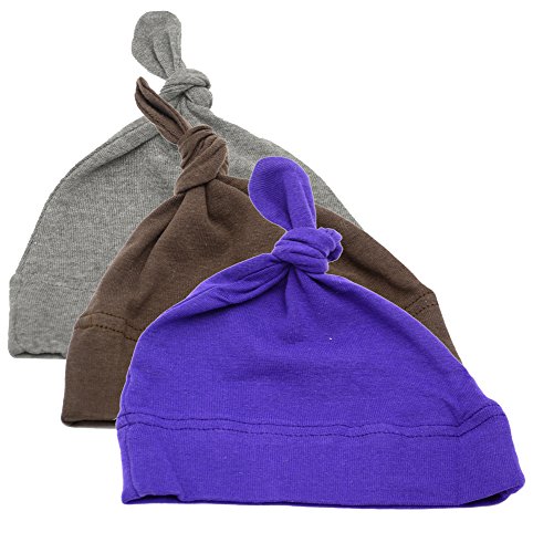 Mato & Hash Unisex Baby 100% Cotton Adjustable Knot Hat 3PK H.Grey/Brown/Purple CA55