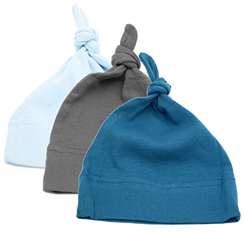 Mato & Hash Unisex Baby 100% Cotton Adjustable Knot Hat 3PK B.Blue/S.Blue/D.Grey