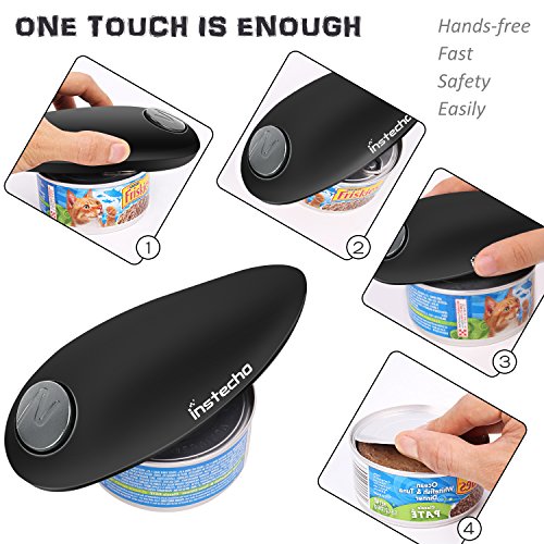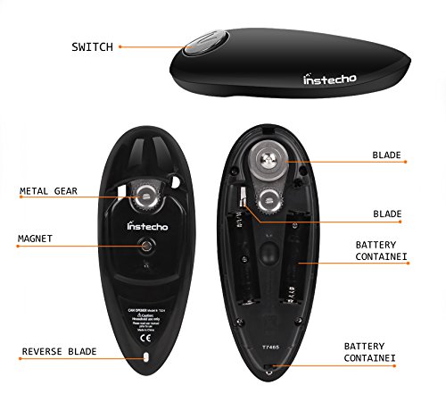 instecho Electric Can Opener for Arthritis Individuals, Seniors (2018-New-Black) Note on proper use: 1) Use all new (2 new batteries required) high quality AA batteries, preferably Duracell, Energizer, or Basics. Cheaper less quality new batteries are inadequate and may not preform as necessary. 2) After completely revolving around the can and cutting the edge, the can will still appear to be sealed. After prying up the lid will it be evident that the can and its resealable lid are detached. 3) When soiled after use, wipe down blade with damp cloth and dry. 4) Do not lift or forcefully remove the can opener from the can while it is operational. Forceful removal can cause damage to the knife-edge. 0