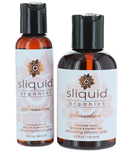 -. Feature : Set Sliquid Organics Sensation Stimulating Natural Lubricant 4.2 FL Plus 2 FL Travel Size / It is infused with organic botanical extracts, as well as the active ingredient, food grade menthol. / Heighten sensitivity and provide a deep, pleasurable feeling during use. Organics Sensation Ingredients / Hypoallergenic and non-toxic, pH balanced neutral / FREE of Glycerin and Paraben, DEA, or sulfates, 100% Vegan friendly.