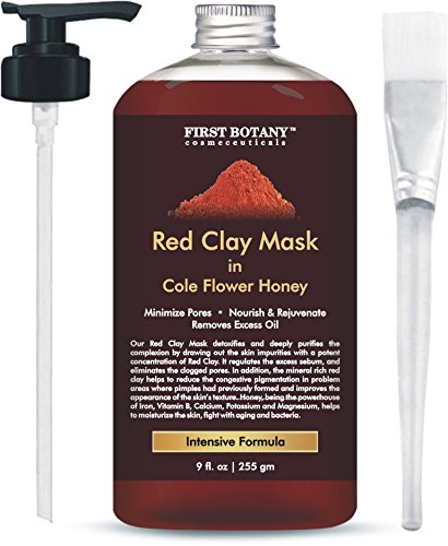 Red Clay Honey Mask 9 fl oz for Anti Aging Facial Treatment, Facial Cleanser, Pore Reducer, Anti Aging Mask, Acne Treatment, Blackhead...