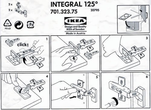 PAIR OF IKEA INTEGRAL AKURUM UTRUSTA 125° HINGES 701.323.75 CABINET KITCHEN