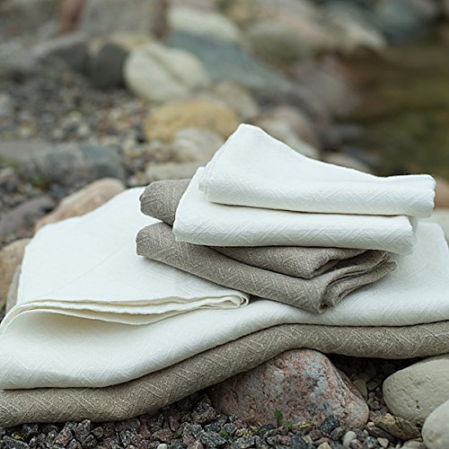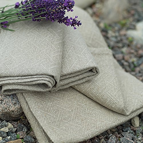 LinenMe Natural Linen Rhomb Damask Hand and Guest Towels, 19 by 28-Inch, Set of 2