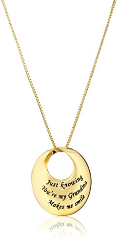 Polished sterling silver necklace featuring round pendant engraved with special message for grandma