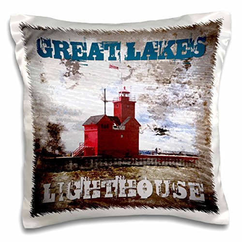 3dRose pc_174726_1 Great Lakes Lighthouse-Grunge Photograph Collage of Lighthouse-Pillow Case, 16 by 16"