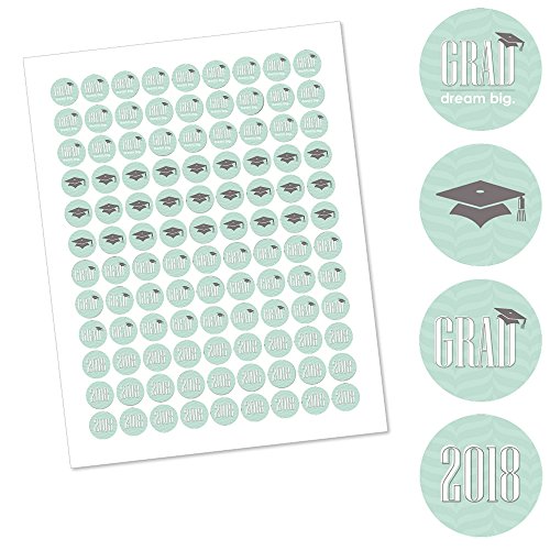 Con-GRAD-ulations Mint - 2018 Graduation Round Candy Sticker Favors - Labels Fit Hershey’s Kisses (1 sheet of 108)