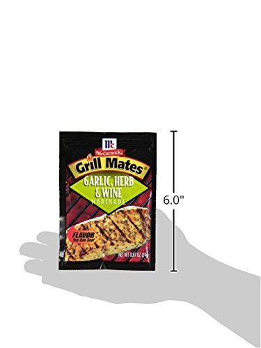 -. Feature : Marinade seasoning features garlic, thyme and white wine / Ideal for seafood and chicken / Made with natural herbs and spices / No MSG, artificial flavors or colors added / From America's #1 herb and spice brand / Backyard barbecues just got more elegant and delicious with McCormick Grill Mates Garlic, Herb & Wine Marinade. This delicate marinade seasoning features a blend of garlic, white wine, thyme and red pepper that will keep your guests coming back for more! Simply combine one marinade packet with ¼ cup water and oil, 1 tablespoon white or balsamic vinegar and 2 pounds of fish, chicken or pork, marinate, grill and enjoy a memorable, mouthwatering meal. / 0.87 oz packet