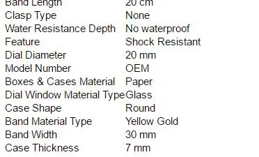 아이템 스펙 - 품목 유형: 석영 손목 시계