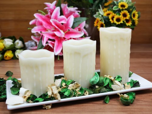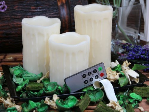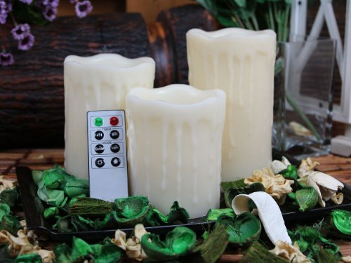The Round drip pillar flameless LED candle provides gorgeous warm glow without the worries of melting wax, open flame, or harmful fumes. Flameless LED candle: includes 4-inch, 5-inch, and 6-inch tall and 3.25-inch diameter candles