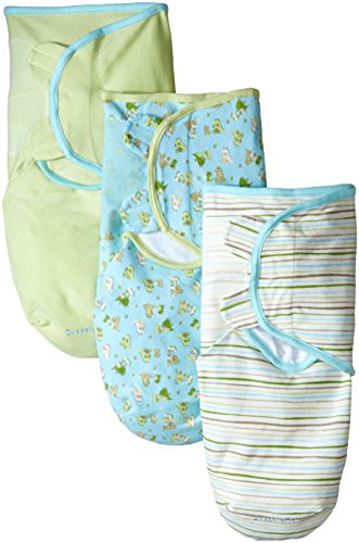 Summer Infant SwaddleMe Adjustable Infant Wrap, Dino Peek/Stripe/Sage, Boy, Small/Medium