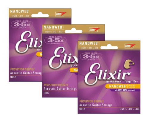 Product DescriptionElixir 16052 Nanoweb Light Phosphor Bronze Acoustic Guitar Strings (3-pack)0