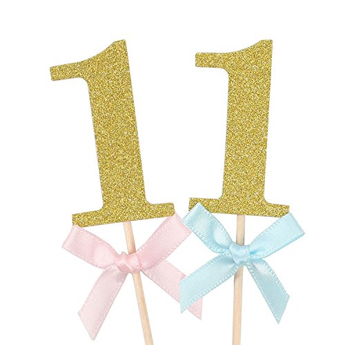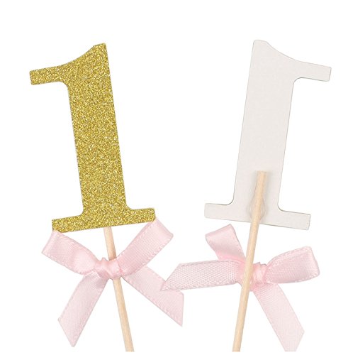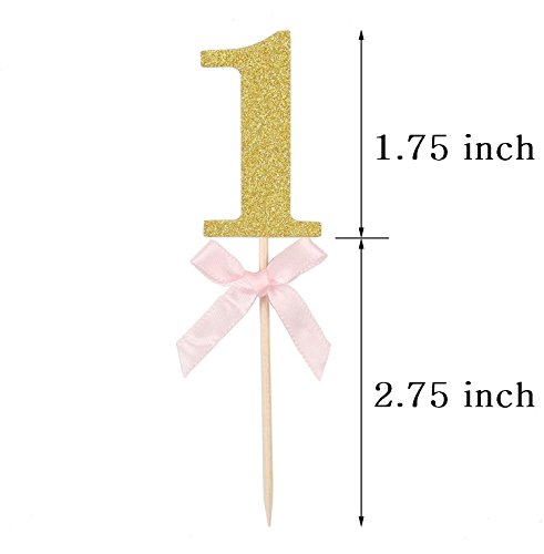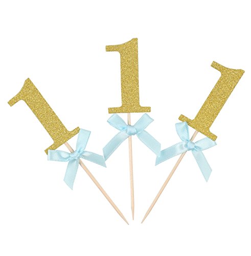 Bling Story 10pcs Glitter Gold and Blue Ribbon 1st Birthday Cake Cupcake Toppers Picks
