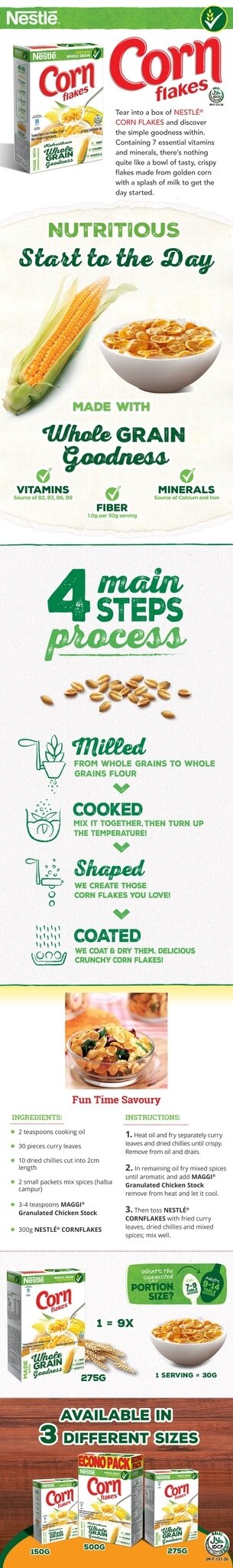 Kickstart your morning the right way with NESTLE CornFlakes breakfast cereal. Made with whole grains, it has carbohydrates and fibre which help provide energy, and also is a source of 4 vitamins, iron and calcium. Refuel your body today and have a nutritious breakfast with NESTLE CornFlakes breakfast cereal!
