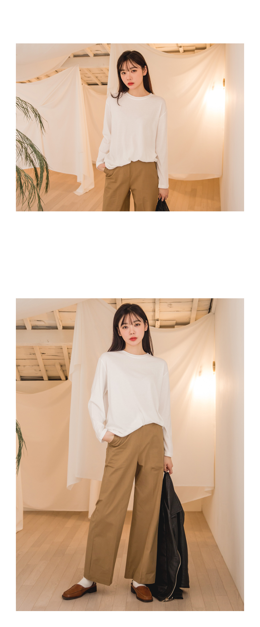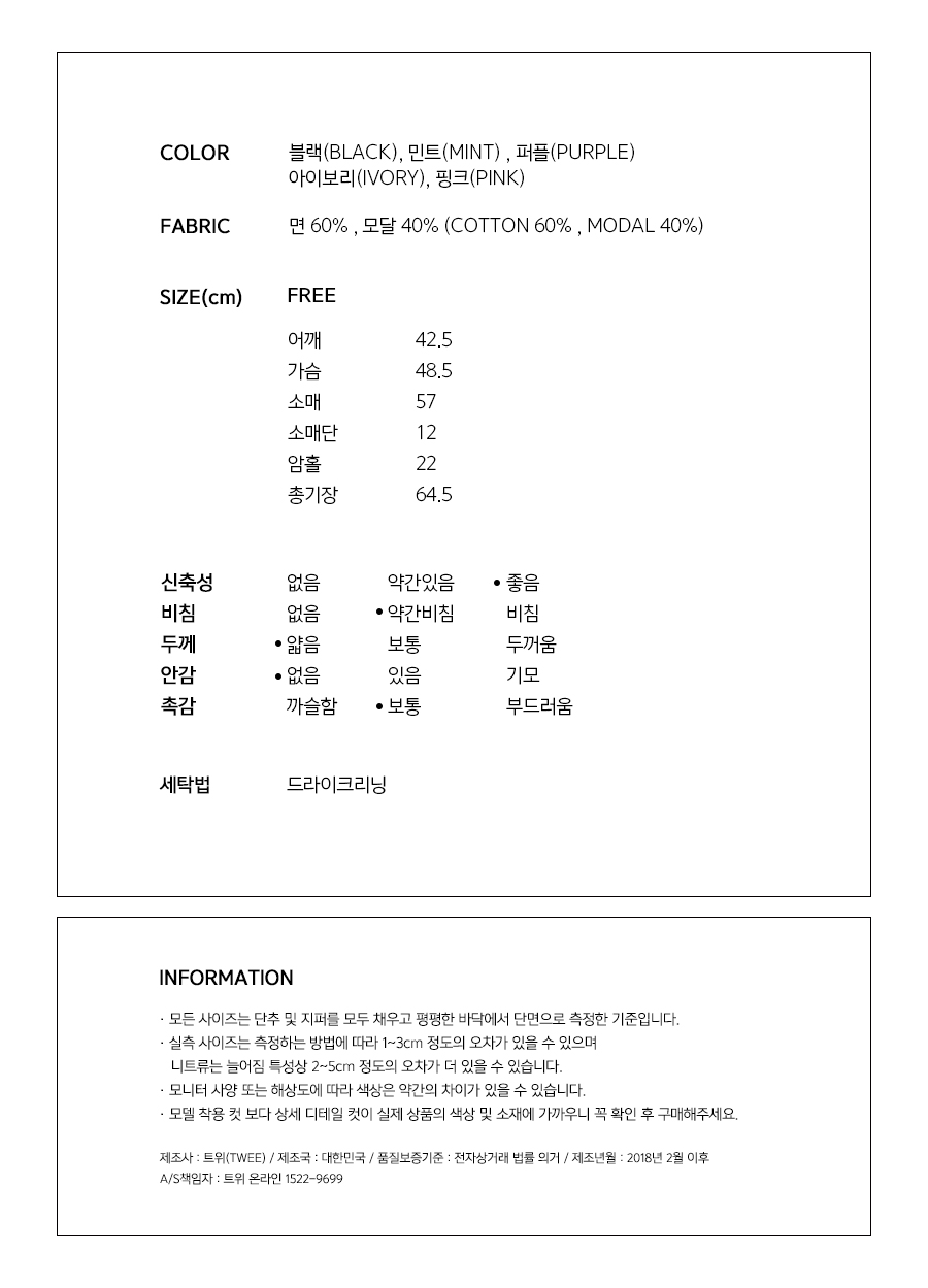힙을 가리는 기장감으로 편안하게 착용하실 수 있구요.