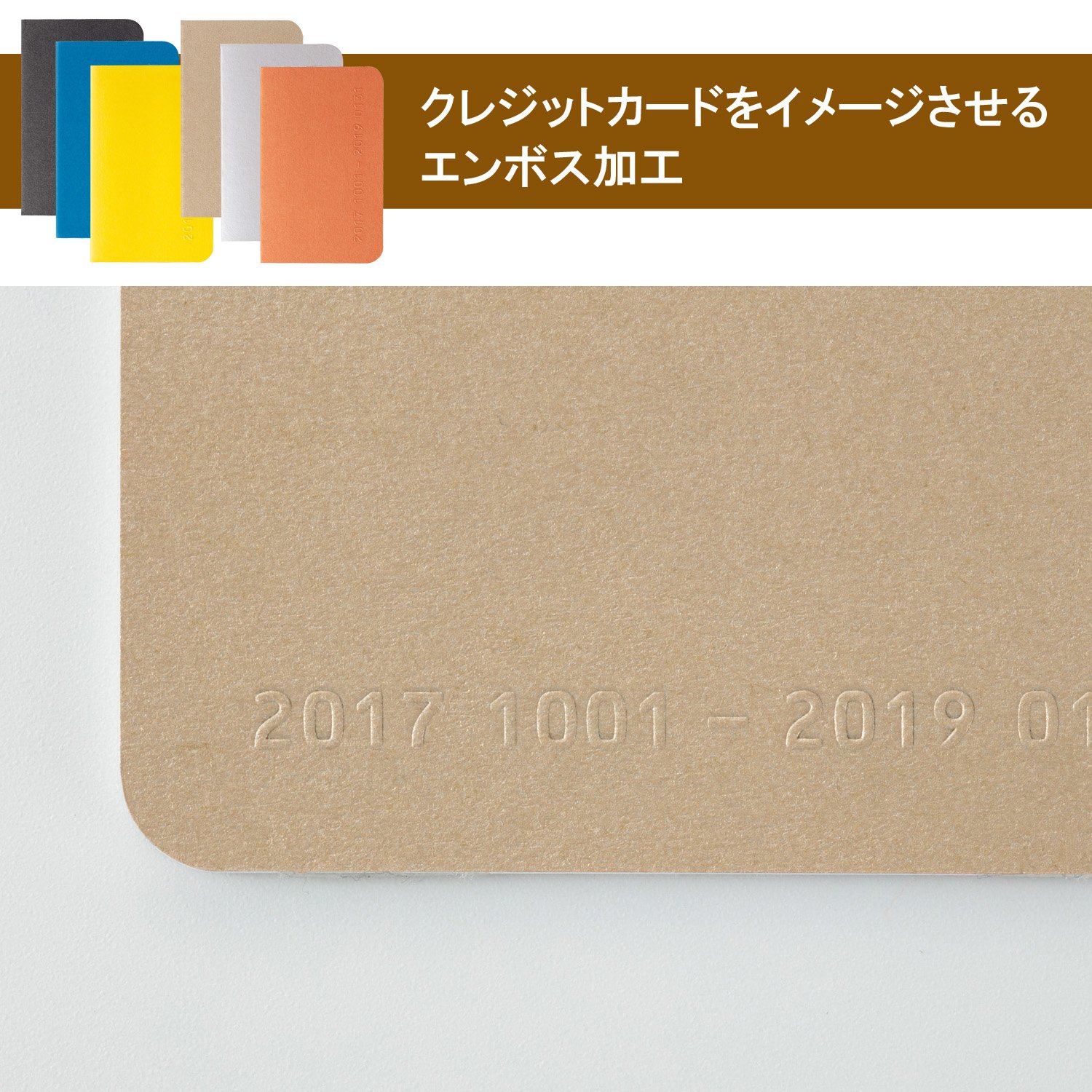 We made embossing on the cover to make the image of the credit card.