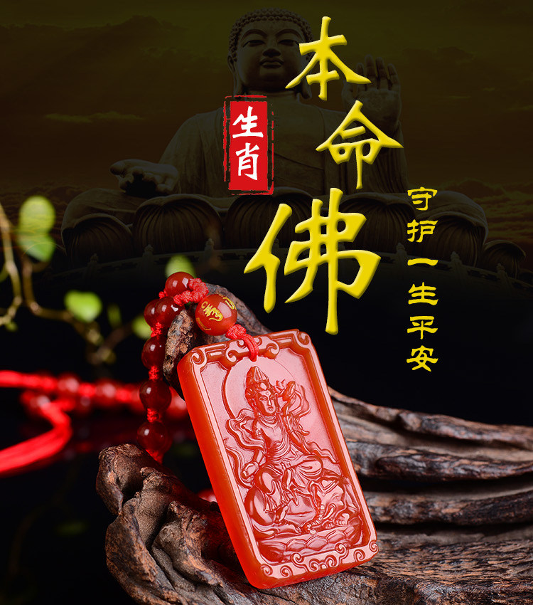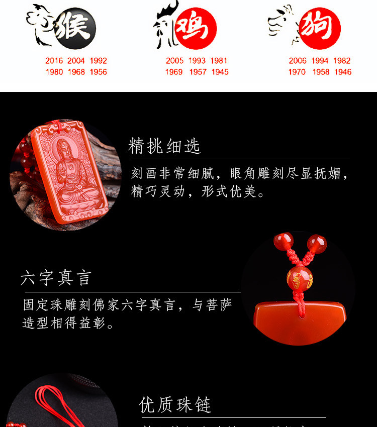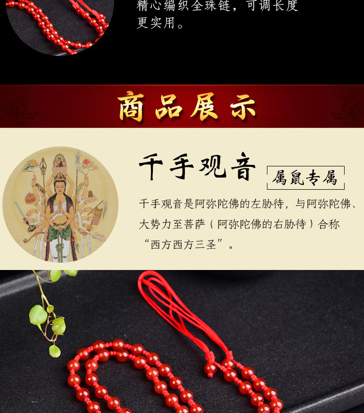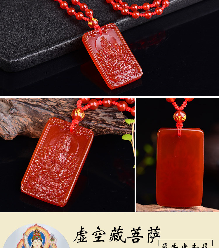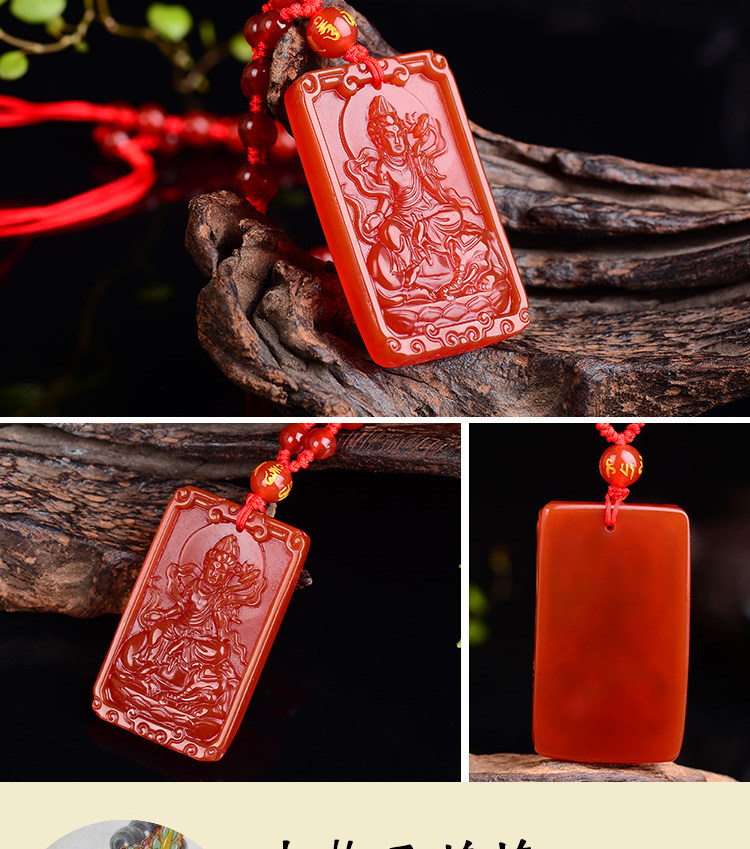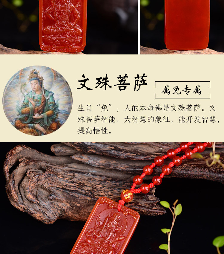 开光红玛瑙文殊菩萨吊坠 生肖属兔本命佛守护神普萨项链男女