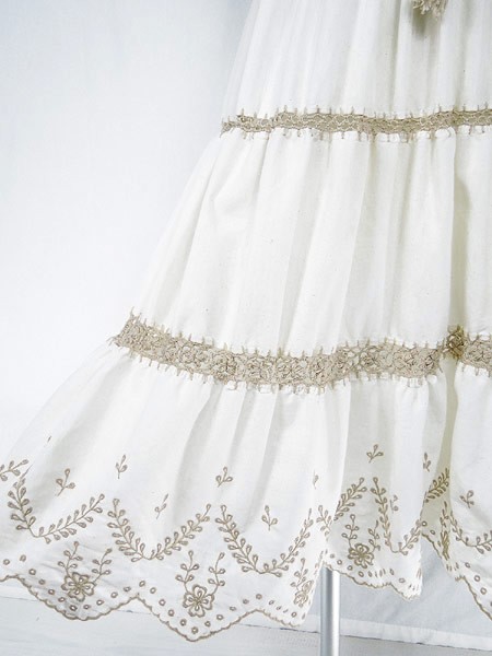 Ladies ブランド- カラー白・ベージュ メール便不可 コンディション★★★ 素材記載なし 表記サイズ記載なし スタッフコメント裏地なし。タグなし、サイズ、素材記載なし(コットンのような質感です) 実寸サイズ 着丈 109 cm 身幅 36 cm 肩幅 28 cm ウエスト 27.5 インチ( 70 cm) ※ウエスト・ヒップ以外は平置き採寸