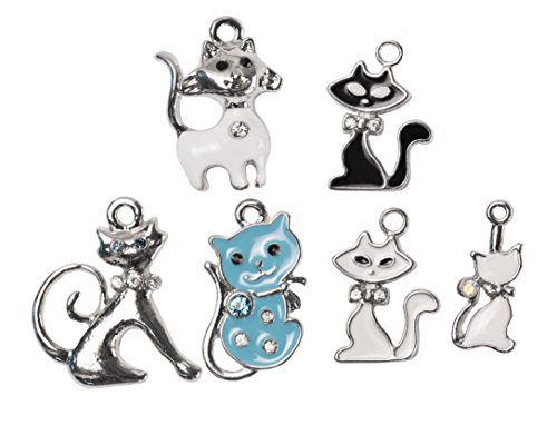 Handmade Cat Charms with Crystal Accents - 6 Pack of Assorted Cat Charms (Exclusive Offer)