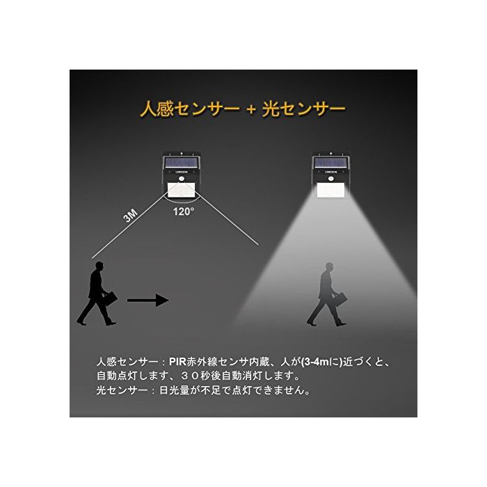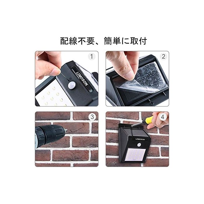 LEMOSON 개량판 센서 라이트 솔라 라이트Lemoson옥외 조명 오름 휘도20 LED wireless 인감센서 탑재 아웃도어 라이트 자동 점등 자동 소등 태양빛 발전 현관 입구 처마 끝 가든