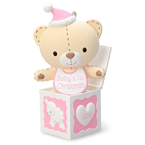 -. Title : Hallmark 2016 Christmas Ornament Baby Girl's First Christmas Pink Teddy Bear in the Box Ornament