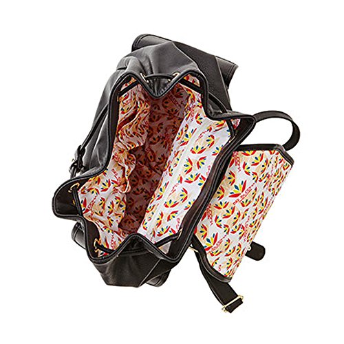 Made from synthetic leather with gold-tone hardware. Front slip pocket, side magnetic snap pockets. Adjustable backpack straps. Magnetic snap top closure. Spacious fully lined fabric compartment. Interior zip and slip pockets. BEFORE PURCHASING, PLEASE COMPARE THE SIZE OF THIS HANDBAG TO ONE OF YOUR OWN FAVORITE BAGS.Feature
