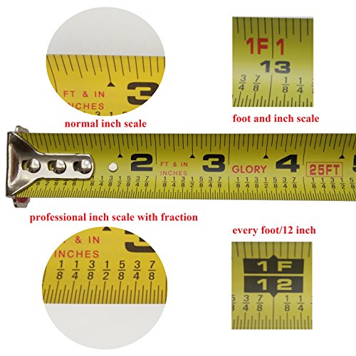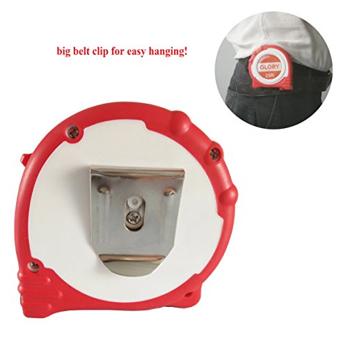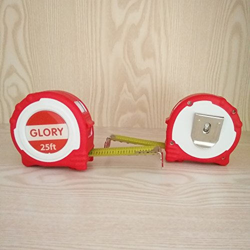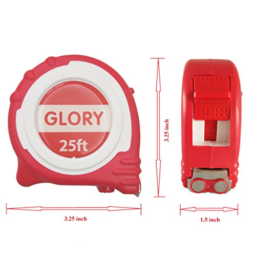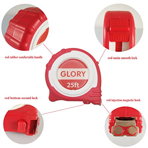 Glory Retractable Measuring Tape Measure 25 Feet length with Magnetic Hook, Professional Inch Blade With Fraction, Red rubber Comfortable handle