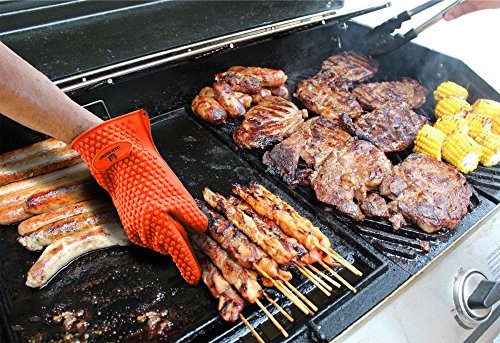 - ✔ GREAT NEW DISCOVERY MAKES OUR GLOVES HIGHLY FLEXIBLE. Now our Highly Flexible, Non Slip, Five Fingered BBQ Gloves let you control the meat like you want to. You can easily pick up hot items; turn chicken, meat and corn on the Barbecue or Grill with ease.