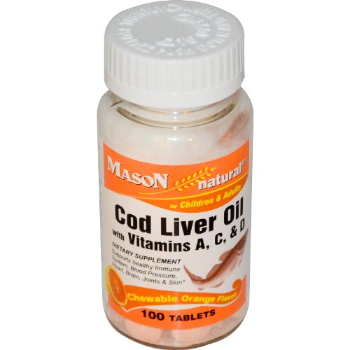 Mason Natural Cod Liver Oil, Chewable Tablets, Orange, 100 ea