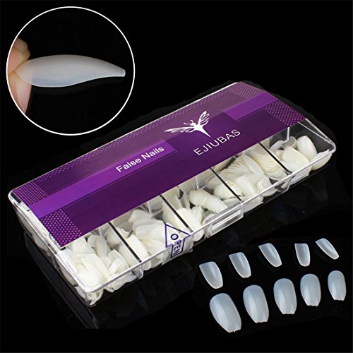 Ejiubas 500 pcs Coffin Fake Nails Natural Color Full Cover Artificial Nails for Gifts, with Free Clear Case
