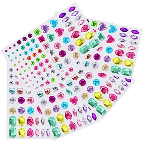 Yoker Self-adhesive Rhinestone Sticker Bling DIY Adhesive Back Craft Jewels Crystal Gem Stickers Multicolor (405 Assorted Pieces, 5 sheets )
