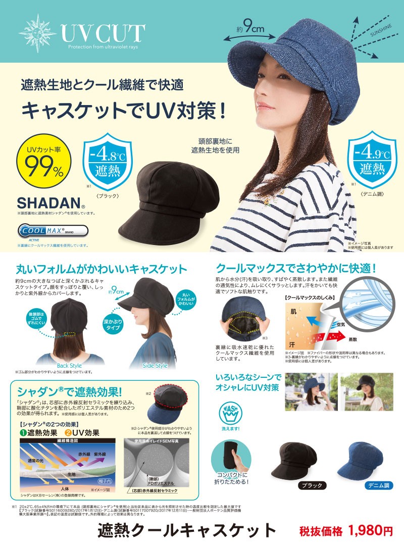 | ご使用上のご注意 | ●本品は折りたたんで梱包している為、折り目が付いている場合がありますが、ご使用していくうちになくなります。 ●長時間折りたたんだままで保管されると、シワになる可能性がありますのでご注意ください。 ●強風時や自転車でのご使用の際は、帽子が飛ぶおそれがありますのでご注意ください。 ●お肌に合わない場合や、かぶれ・かゆみ等を感じた場合はご使用をおやめください。 ●本品裏縁に吸水速乾に優れた繊維を使用しておりますが、本品自体が冷たくなることはありません。 ●快適さの感じ方には個人差があります。 ●乳幼児の手の届かない場所に保管してください。 ●火気のそばや高温多湿な場所、直射日光の当たる場所には保管しないでください。 ●本来の目的以外でのご使用はおやめください。 ●印刷の都合上、実際の商品と多少色が異なる場合があります。 |