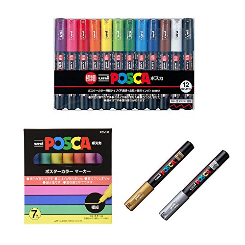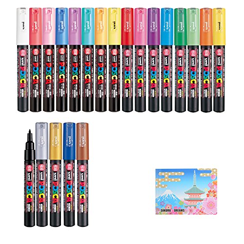 Uni Posca Paint Marker FULL RANGE Bundle Set , Mitsubishi Poster Colour ALL COLOR Marking Pen Extra Fine Point ( PC-1M ) 21 Colours ( 14 Standard & 7 Natural ) Japan Import , 5 Colors Sticky Notes