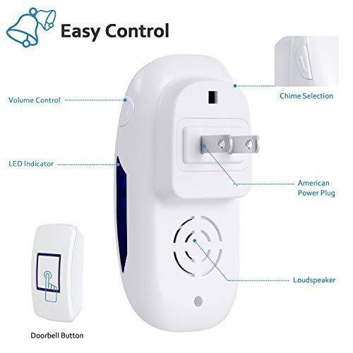 Long Wireless Range The control range can reach up to 1000 feet in open air which is long enough to hear the doorbell ring around house. Never miss your guests!