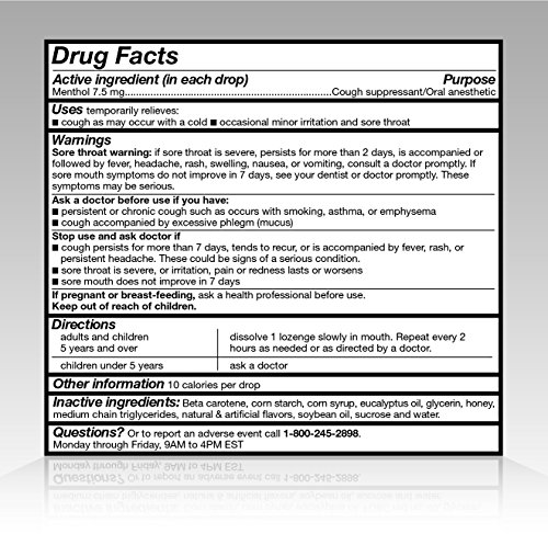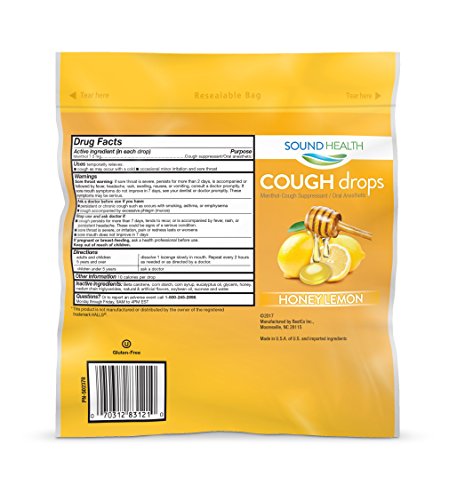 Product DescriptionSoundHealth Honey Lemon Cough Drops, Menthol Cough Suppressant/Oral Anesthetic, Soothes Sore Throat Pain, Temporarily Relieves Cough.0